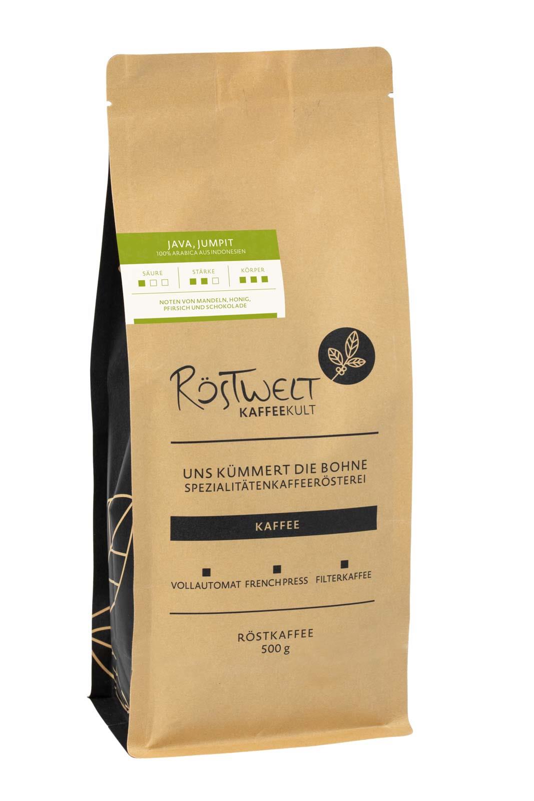 Unser Java Jumpit Kaffee entführt dich auf eine aromatische Reise durch die exotische Landschaft der indonesischen Insel Java. Diese exklusive Kaffeesorte stammt von der Jampit Estate, gelegen in der malerischen Region des Ijen-Plateaus im Osten Javas, auf einer Höhe von 1100 bis 1600 Metern. Angebaut wird hier die hochwertige Arabica-Varietät Typica, deren Bohnen nach der Ernte gründlich gewaschen und in der Sonne getrocknet werden. Jampit Estate setzt auf Tradition und Qualität. Mit modernen Anbaumethoden und einer engen Verbundenheit zur Umwelt werden hier jährlich erlesene Kaffeekirschen geerntet und zu einem einzigartigen Kaffeeerlebnis verarbeitet. Die vulkanische Umgebung und die üppigen Wälder sind wie für den Anbau von Arabica-Bohnen geschaffen, die für ihren samtigen Körper und die dezente Säure bekannt sind. Java Jumpit Kaffee verwöhnt deine Sinne mit Noten von Mandeln, Honig, Pfirsich und Schokolade.